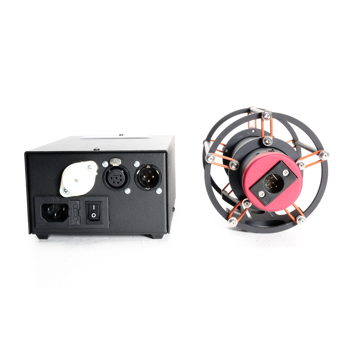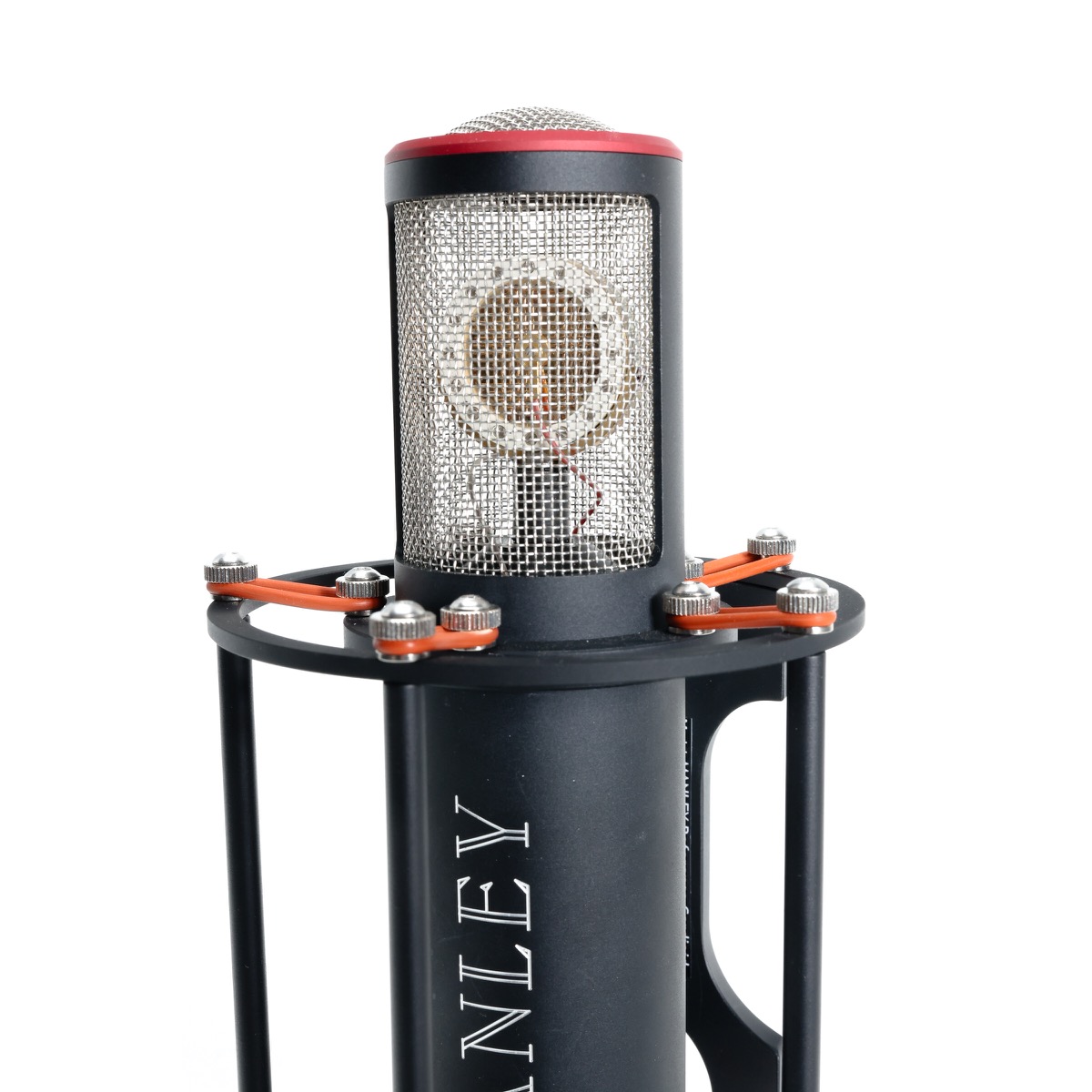 A proprietary precision suspension system is provided with each Reference Microphone (the capsule itself is mounted onto a rubber shock-mount.) Because the entire working “guts” of the microphone may be removed for service in one piece from the housing, it is envisioned that the microphone need not be removed from the suspension. Manley also provides a very useful swivel of their own design with every REFERENCE MICROPHONE; its T-bar handle and locking clutch action require no tools to adjust. And no MANLEY microphone would be complete without a genuine leather capsule protector which slips (and ties) onto the end of the microphone to protect the capsule when not in use.