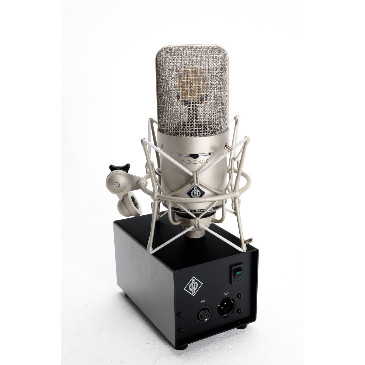 The M 149 Tube is addressed from the front, marked with the Neumann logo. Also on the front is the switch for the selection of the polar patterns.
