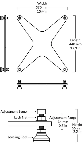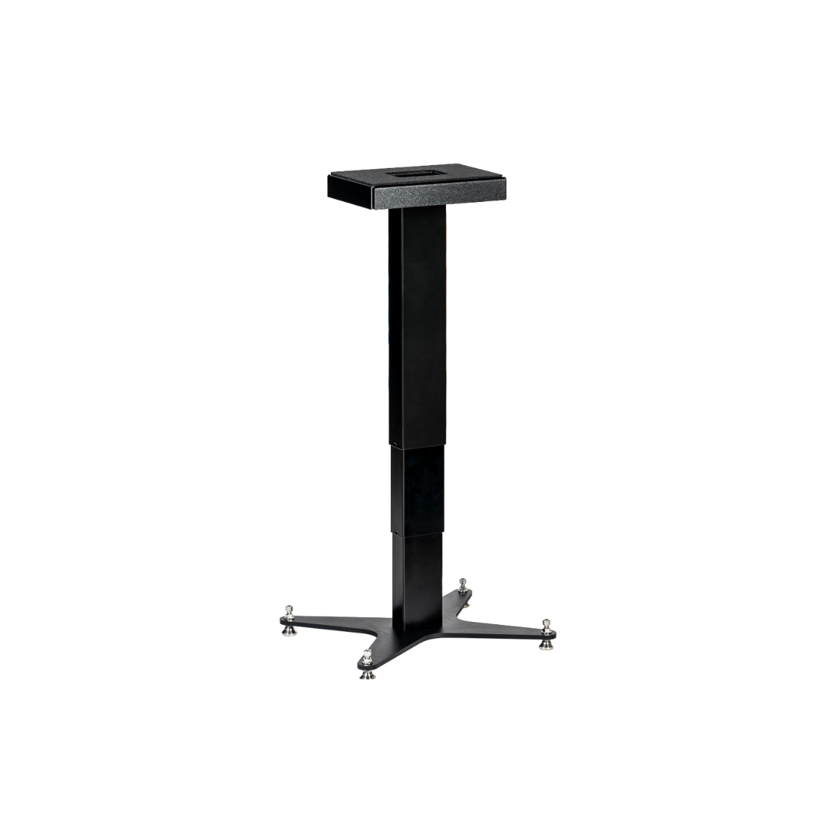 - Four precision machined articulating leveling feet provide easy adjustment from the top of the stand, ensuring that uneven floors won’t compromise stability