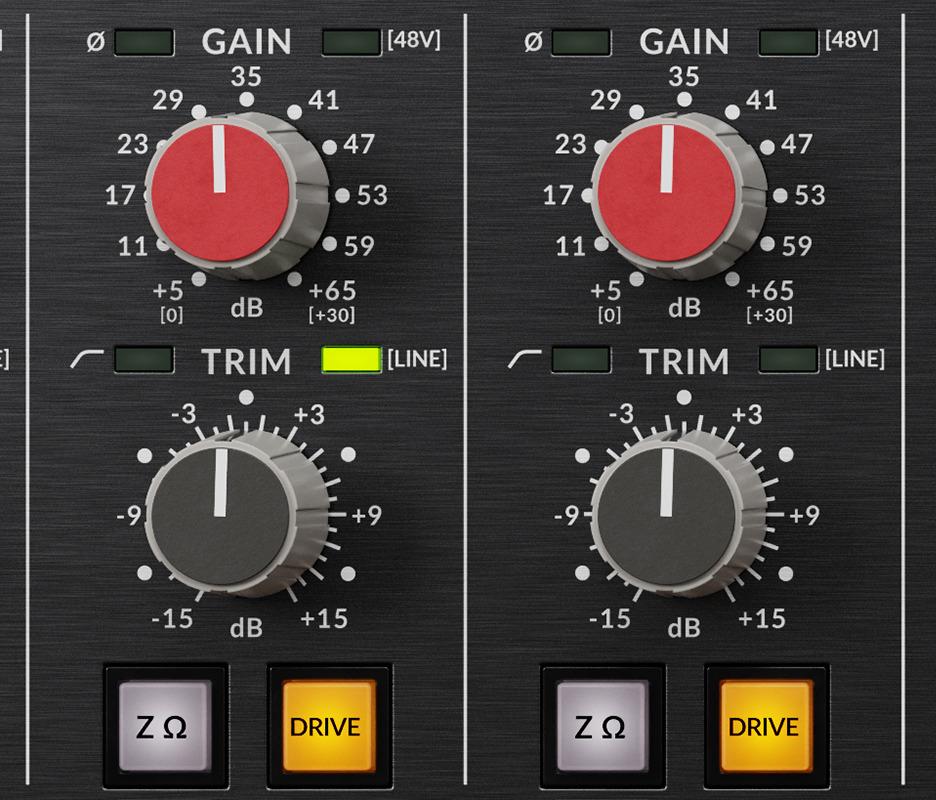 - 31-step Trim control, with precise 1 dB increments – overdrive the signal with the Gain control and then reduce to a suitable level using Trim