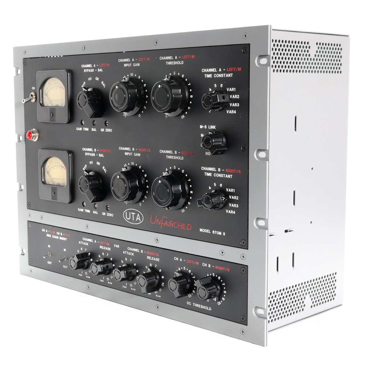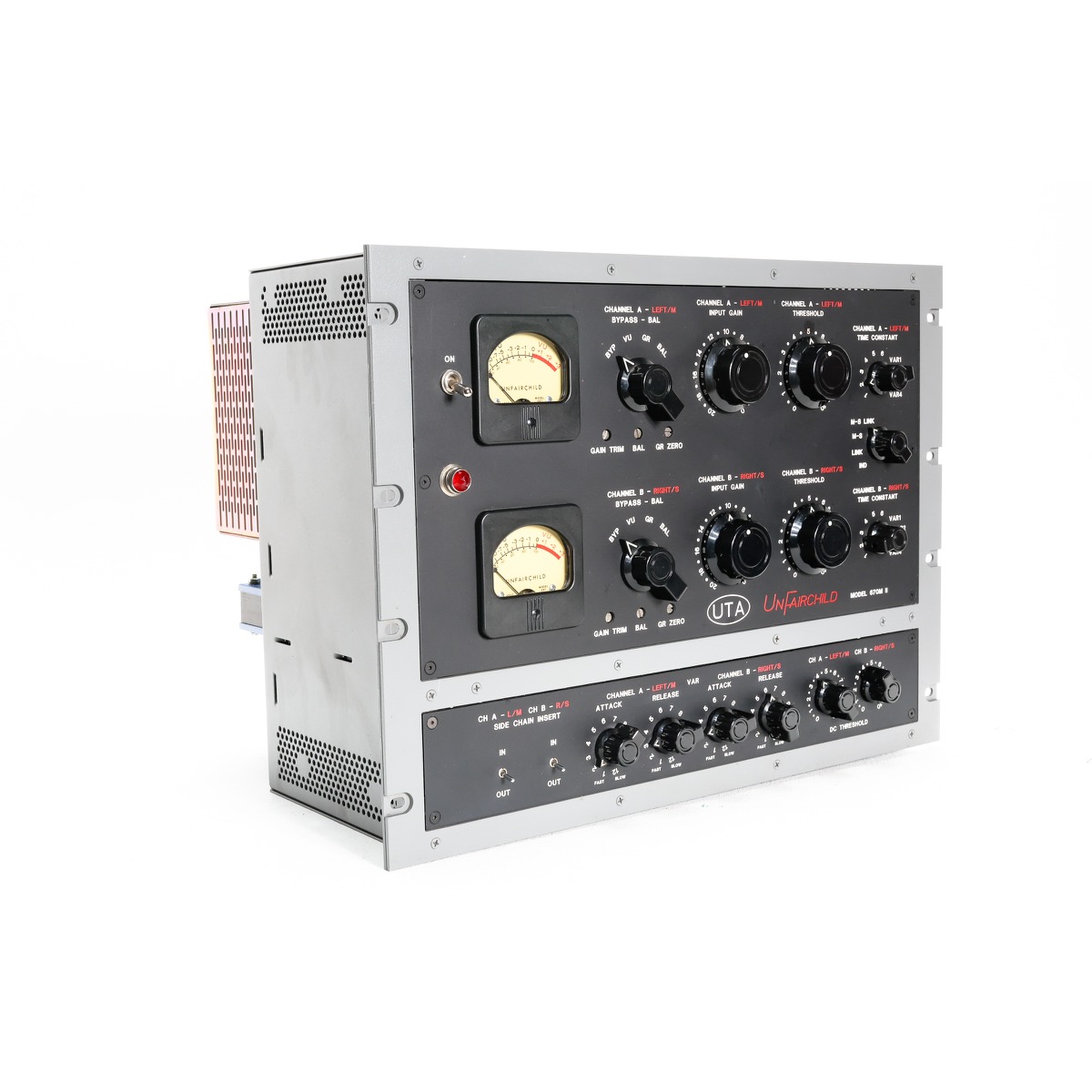There are a few limitations of the original Fairchild that we set out to address. First, we have made careful adjustments to the circuitry that greatly improve the lifespan and reliability of the tubes. Additionally, we’ve added a whole host of exciting new features that have never before been available on a Fairchild. The UnFairchild sports 6 original preset Time Constants and 4 variable Time Constants (attack and release), MS function, side chain processing, a true bypass, fine adjustment of left/right balance, user adjustable “DC Threshold”, and “Feed-Back” vs. “Feed-Forward” functionality. With the UnFairchild, we’ve made this extraordinary circuit flexible enough to handle pretty much every compression task on any style of music.